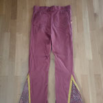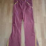 Die Hosen sind aus einfachem Stoff mit einem breiteren Schlag an den Füssen und mit einer Pailletteneinlage (Glitzerstoff).